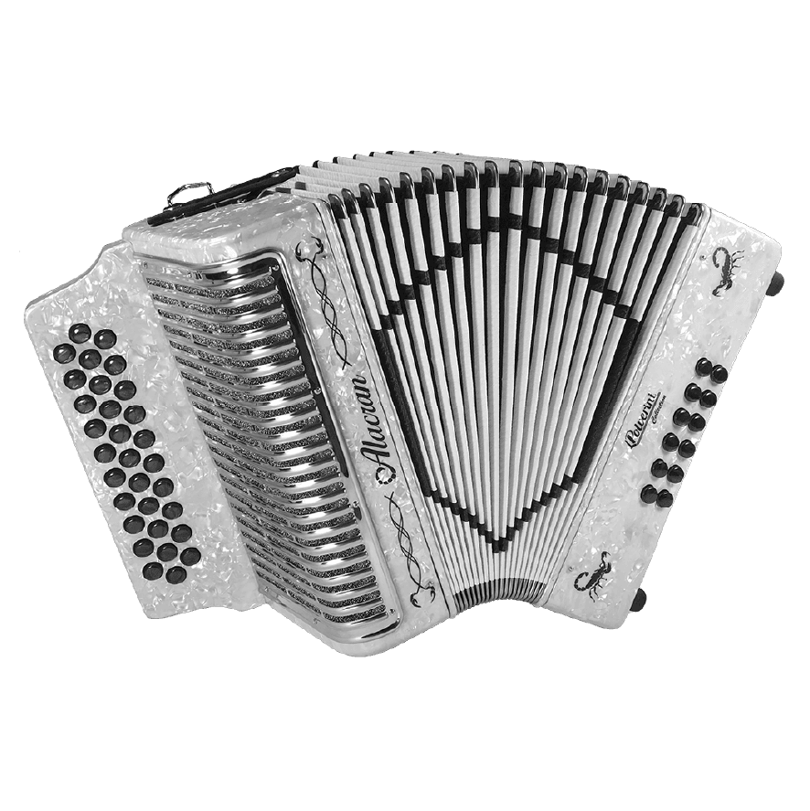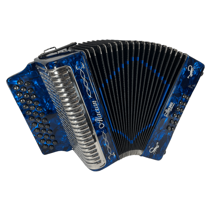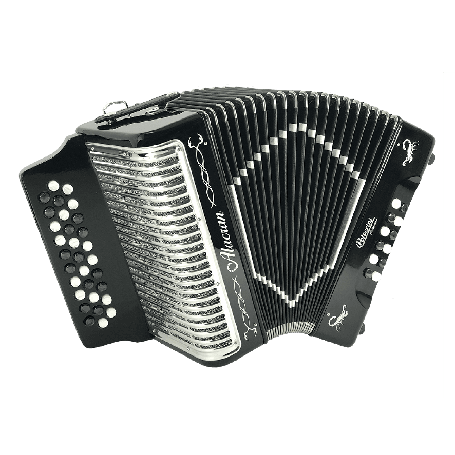 The Alacrán Accordion is a rugged, entry-to-intermediate level diatonic accordion ideal for Norteño, Vallenato, and Tex-Mex music styles. Crafted for reliability and resonance, it’s a popular choice among students and stage performers.