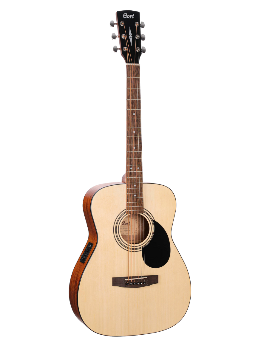 The Cort AF510EOP is a Concert-body acoustic-electric guitar designed for balanced tone, clarity, and expressive playability. With a spruce top, mahogany back and sides, advanced X-bracing, and Cortβs CE304T electronics, it delivers excellent performance for fingerstyle, solo playing, and stage use.