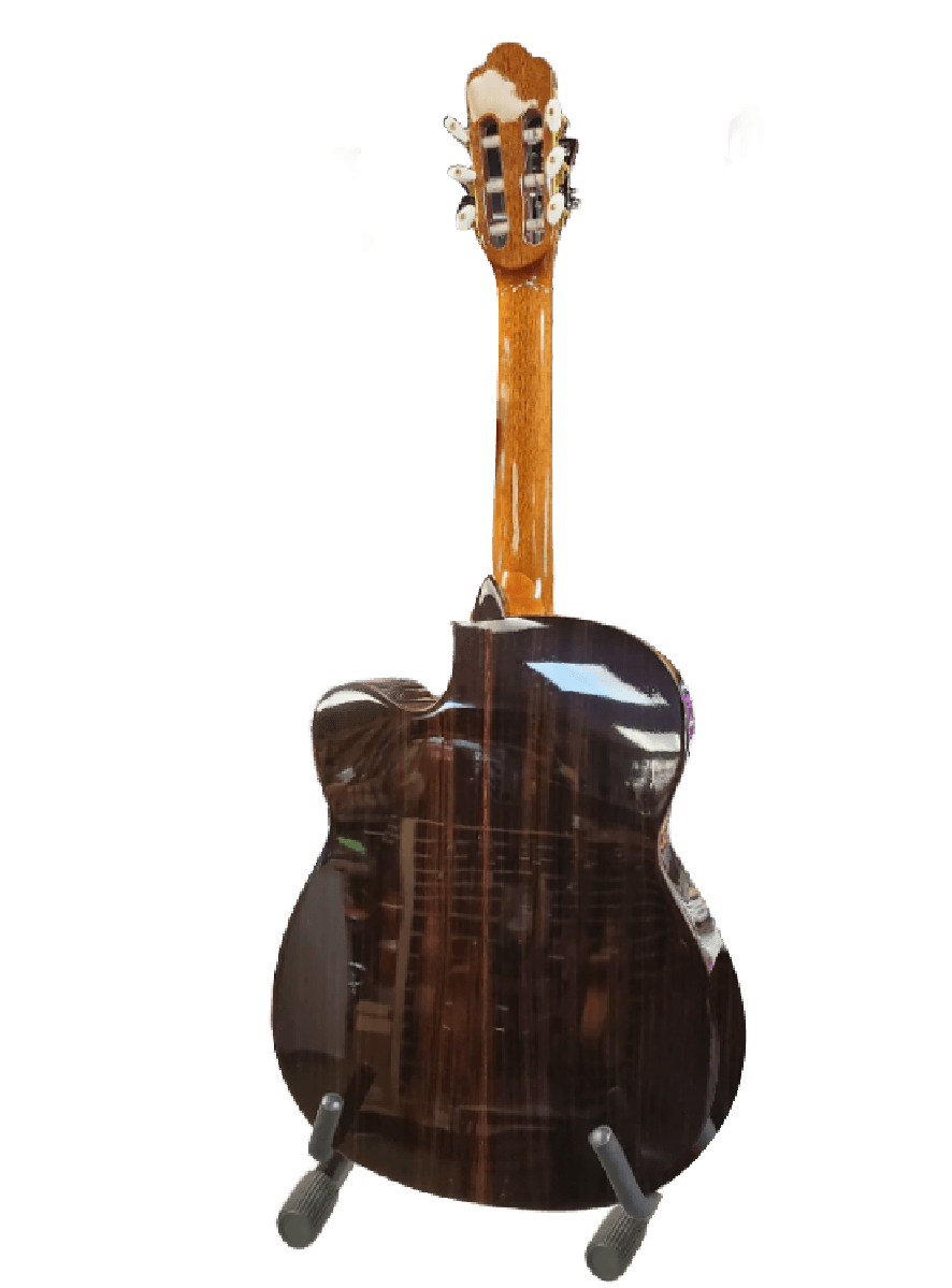 The Don Cortez Requinto DX932CEQ is a large-sized Grand Concierto requinto, handcrafted for exceptional tonal clarity and projection. Featuring a spruce top and rosewood back, sides, and fretboard, it combines elegant aesthetics with professional-grade sound. Perfect for regional Mexican and romantic music. Includes Fishman pickup system and oval/conch-shaped sound hole.
