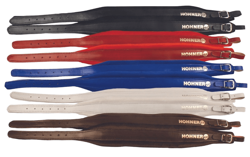 Large Hohner accordion straps for diatonic or piano accordions — available in multiple colors for comfort and style.