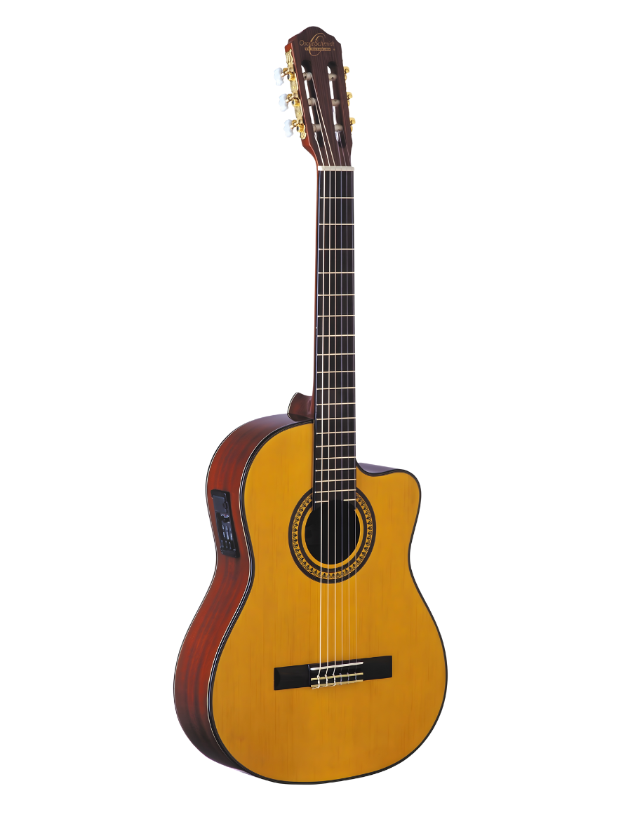 The OC11CE-A is a full-size classical acoustic-electric guitar designed for players who want the traditional warmth and feel of nylon strings combined with modern performance features. Its cutaway body allows comfortable upper-fret access, making it suitable for classical, Latin, flamenco-inspired, and fingerstyle playing.